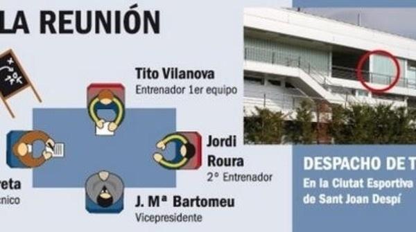 وأشارت الصحيفة الكاتالونية- التي نشرت رسم جرافيكي تخيلي للاجتماع الذي دام ٣ ساعات في مكتب تيتو مع زوبي رورا وبارتوميو للحديث عن الصفقات - إلى أنّ رغبة المدرب الإسباني بالاستغناء عن عدد من اللاعبين جاءت من منطلق الحفاظ على استراتيجية النادي القائمة على الاعتماد على لاعبي الشباب الذين أنجبتهم مدرسة "لاماسيا" الخاصة بالفريق، بالإضافة إلى تحسين أداء الفريق الذي انخفض تدريجياً في مرحلة إياب "الليغا".