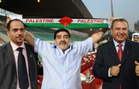 بالصور.. مارادونا يرفع وشاح فلسطين عاليا خلال مشاركته في إفتتاح تصفيات الأولمبياد الخاص