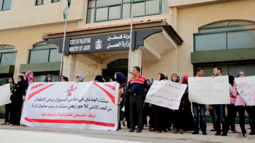 أما ضمن مشروع تمكين المرأة في العمل السياسي الممول من مؤسسة KTK السويديه، فقد تم تنفيذ وقفة شبابيه أمام وزارة العمل في محافظة رام الله، للمطالبة بحقوق العاملين/ات وتطبيق قانون الحد الأدنى للأجور كخطة أساسية وضرورية، بالإضافة الى العمل بشكل جدي على رفعه الى مستوى يتناسب مع خط الفقر الوطني.