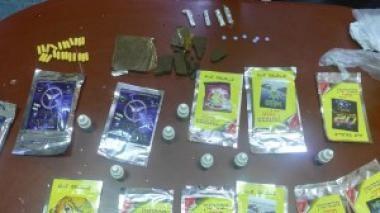 وأوضحت أنه تم العثور على كميات "من مادة الهيدورين والحشيش ملفوفة بالنايلون وورق القصدير ومعدة للبيع، كما تم العثور على7 قطرات مخدرة، و6 حبات اكستازي، و24 كبسوله صفراء بداخلها مواد مخدرة".