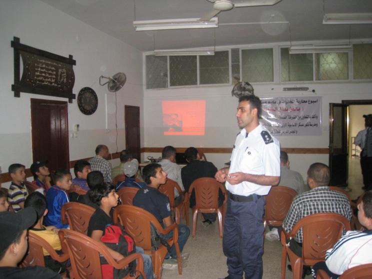 نظمت الشرطة اليوم محاضرة شرطية توعوية حول مخاطر المخدرات في جمعية المستقبل الفلسطيني .