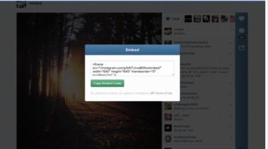 وأتاحت إنستاجرام بدءًا من اليوم ضمن موقع الخدمة على الويب، زرًا للمشاركة يظهر ضمن الصفحة الخاصة بكل صورة، يؤدي الضغط عليه إلى إظهار شيفرة برمجية بصيغة HTML يمكن استخدامها لإدراج الصورة ضمن أي صفحة ويب عن طريق نسخها ولصقها ضمن الصفحة المطلوبة. وتتيح هذه الميزة إدراج كل من الصور ومقاطع الفيديو.