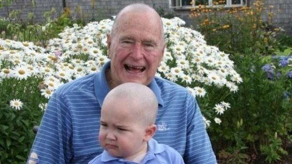 جورج بوش الأب يحلق رأسه تضامناً مع طفل مريض بالسرطان