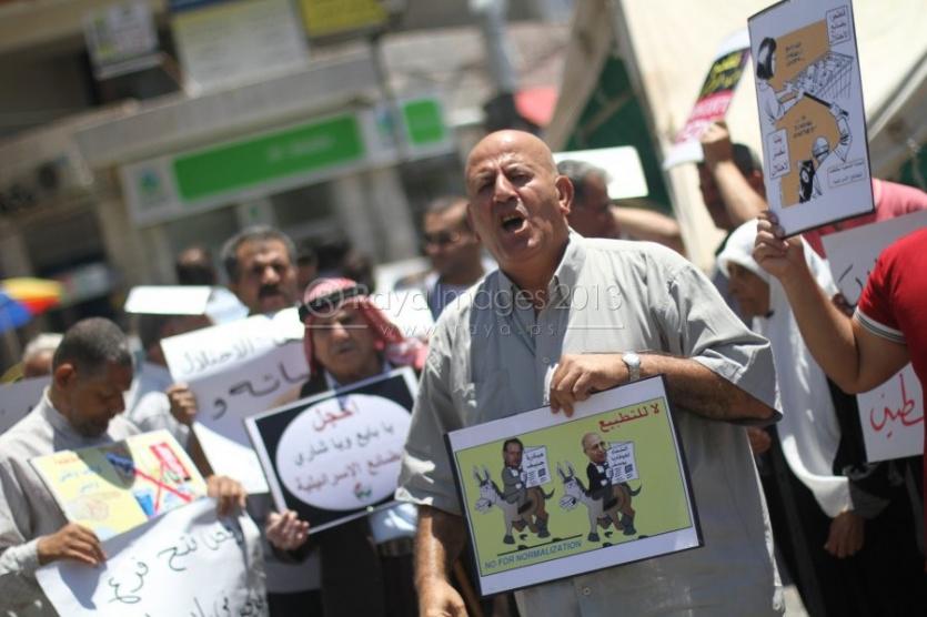 ورفع المحتشدون يافطات منددة بالانفلات التطبيعي الاسرائيلي الذي يقوم به جهات عديدة، رافضين الغزو الاسرائيلي للأسواق الفلسطينية، مؤكدين على تمسك حق الشعب الفلسطيني بمقاطعة الاحتلال بكل ادواته ومشاريعه ومؤسساته.