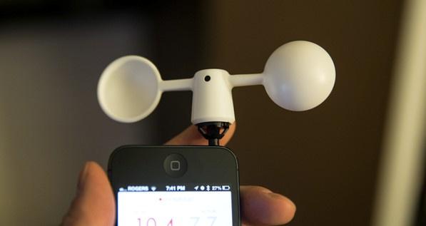 يعمل التطبيق المتوافق مع هواتف أندرويد وآيفون بالتكامل مع جهاز صغير يركب في منفذ الصوت على شكل مراوح صغيرة تشبه تلك الحقيقية المستخدمة في قياس سرعة الريح والمستخدمة في مراكز الأرصاد الجوية.