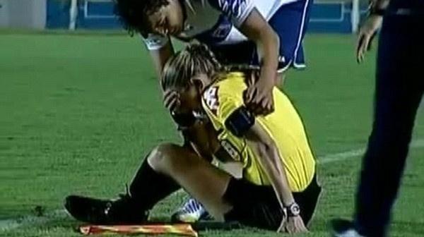 تسببت تصويبة قوية من لاعب خلال مباراة بدوري الدرجة الثانية في البرازيل بسقوط قوي لحكمة مساعدة كانت ضمن طاقم التحكيم الذي يدير مباراة بين فريقي أتليتكو غو وبارانا كلوب، دون أن يمنعها ذلك من إكمال المباراة بعد تلقي العلاج اللازم.