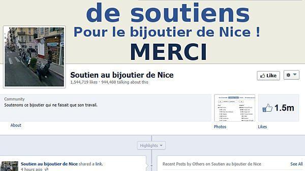 نشئت على موقع "فيسبوك" صفحة داعمة لتاجر مجوهرات فرنسي مُتهم بقتل سارق، وباتت تضم 1.5 مليون مؤيد. وأثار هذا الرقم الكبير جدلاً وشكوكاً على "تويتر".