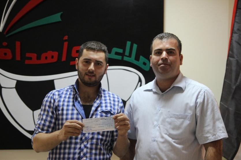 وتسلم محمد نعيم صالح سلامه من عنبتا طولكرم الفائز بجائزة الـ 11 إجابة صحيحة والبالغ قيمتها 5000 شيكل جائزته اليوم في مقر الشركة ، وتحدث سلامه عن سعادته بفوزه مع مجلة ملاعب وأهداف الالكترونية وأضاف محمد سلامه انه أصبح مهتم بالرياضة بعد مشاركته بالمجلة وقدم شكره لإدارة الشركة الممثلة بالسيد سائد قدوره، على دورها في نشر الثقافة الرياضية وما تساهم به من اجل تعزيز هذه الثقافة