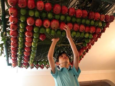 الفرحة تبدو على عطا وآشر، ويقول آشر: “العيد جميل، نعلق الفواكه نسعد ونزين الشوارع، نذهب إلى الكنيس، لكن لن نحج هذا العام إلى المكان المقدس″.