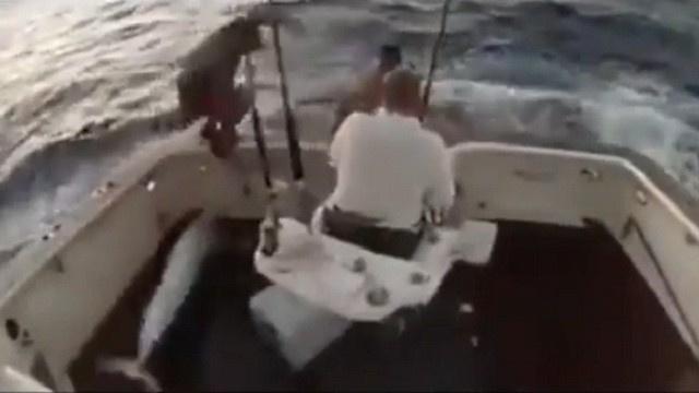 بالفيديو .. سمكة تطير وتقتحم زورق 3 صيادين فاستنجد أحدهم بالبحر