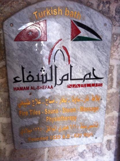 وابتدأت الجولة بزيارة حمام الشفاء ووضح احد العاملين في الحمام البعد التاريخي للحمام، كونه احد الحمامات التركية المشهورة في مدينة نابلس، ويأتي إليه الكثير من أبناء المحافظة وسائر مناطق الضفة الغربية وفلسطينيو الداخل ويصل عمر حمام الشفاء إلى أكثر من 840 عام.