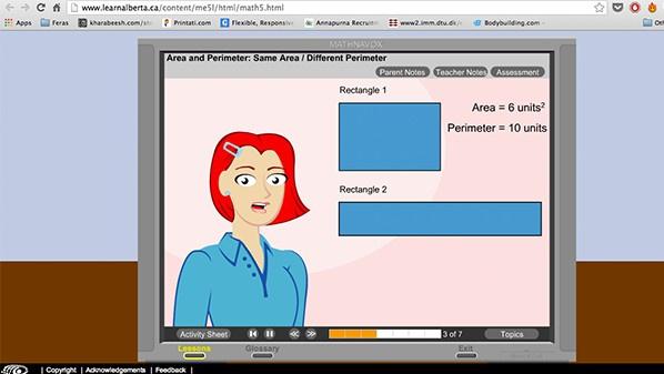 وموقع “LearnAlberta” يوفّر دروس تفاعلية في مادة الرياضيات باللغة الإنكليزية وبشكل مجاني، ويمكن الوصول إليها عبر