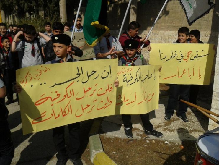 و شاركت فرقة كشافة المدرسة الثانوية الإسلامية في تلك الفعاليات حيث انطلق جميع الطلبة المشاركين من مدرسة العائشية للبنات في مسيرة كشفية باتجاه المقاطعة تخللها العزف على الآلات الموسيقية والكشفية ورفع الشعارات المنددة بجريمة اغتياله واللافتات التي تذكر بمواقفه البطولية وتاريخه النضالي الطويل. وفي نهاية المسيرة كان هناك حفل جماهيري بساحة المقاطعة حيث تم إلقاء الكلمات بهذه المناسبة .وتأتي هذه المشاركات ضمن خطة الفرقة الكشفية السنوية لإحياء المناسبات الوطنية والدينية . وأشرف على تدريب الفرقة قائدها أساتذة مختصون في المدارس الإسلامية .و شاركت أيضا بالمسيرة التضامنية معلمات وطالبات المدرسة الإسلامية للإناث وكان ذلك تحت إشراف جمعية التضامن الخيرية ، وقد سبق هذه المشاركة فعاليات متنوعة أقيمت في ساحة المدرسة حيث ألقت مديرة المدرسة خضرة ابو عرب كلمة استعرضت فيها أهم المراحل التاريخية في حياة هذا الرمز القائد وتلاها مشاركة لطالبات المدرسة ببعض الاستعراضات الكشفية المتمثلة في حمل العلم الفلسطيني وصور الشهيد الرمز ابو عمار .