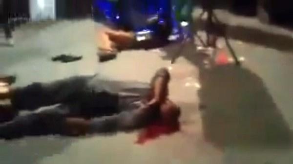 ويظهر التسجيل رجلاً يطلق النار في الهواء ثم يبدأ في الرقص مع ضيوف آخرين على موسيقى الأغنية الشهيرة، ثم يسمع صوت إطلاق نار تعقبه مشاهد لجثث مسجاة على الأرض وسط برك من الدماء.