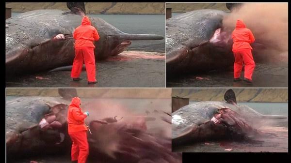 وأمر البيولوجي بتفريغ الحوت من الداخل، من أمعاء ومصارين وزعانف وممرات وغيرها، لتسهيل الأمور، لكنه نسي أن الغازات تتوالد في الحيوانات بعد موتها، فتصبح ضاغطة وتجعل بطون بعضها تبدو كبالونات منفوخة، وحين حاول المساعد فتح الحوت من بطنه لتفريغ ما فيه، انفجر كبير البحار في مشهد مرعب، وربما مقزز، بحسب فيديو نسخته "العربية.نت" من شبكة Netvarp الايسلندية، وبانفجاره أعطى درساً لعالم البيولوجيا.