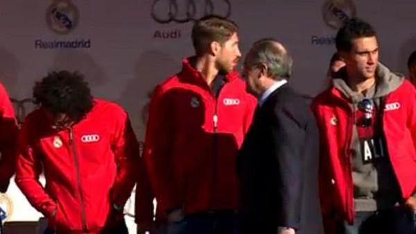 كشف شريط فيديو نشرته صحيفة "آس" الإسبانية، عن توتر العلاقة بين رئيس نادي ريال مدريد فلورنتينو بيريز، ولاعب الفريق الدولي سيرخيو راموس، إذ تجنّب الأول مصافحة الثاني ولم يعره أي اهتمام خلال حفل أقيم صباح الخميس بحضور جميع عناصر "الميرنغي".