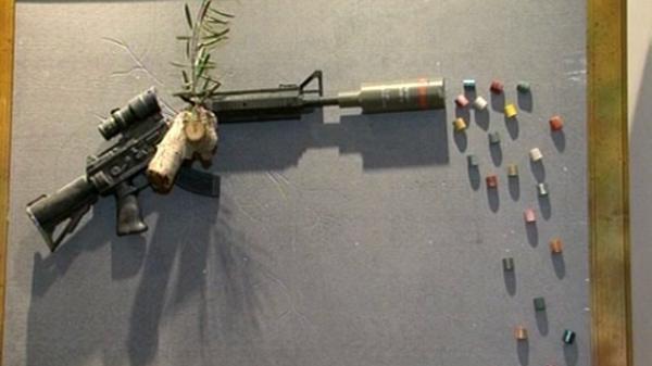 وتحدث محمد الخطيب، وهو أحد الناشطين المشاركين في عمل تصميم المعرض الفني، عن رغبتهم في دمج المقاومة مع الفن، لتحويل أدوات القتل إلى أدوات تعطي تفاؤلا وحبا للحياة.