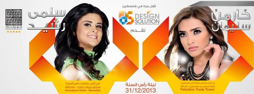تختتم شركة ديزاين سوليوشن العام 2013 بحفلتين مميزتين للنجمتين كارمن سليمان وسلمى رشيد في مدينة رام الله في ليلة رأس السنة لتكون بوابة لانشطة متنوعة متعددة لشركة ديزاين سوليوشن لعام 2014.