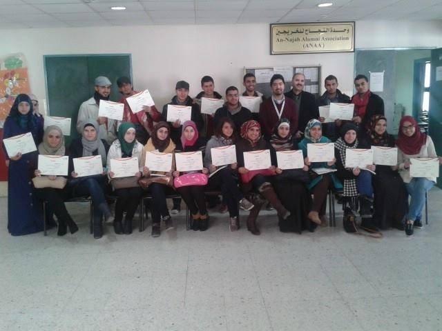 وفي نهاية الورشة تم توزيع الشهادات على الطلبة المشاركين بحضور مدير وحدة النجاح للخريجين رافع دراغمة، ومساعد مسؤول العمليات في مؤسسة انجاز عبدالرحيم ولويل، وشكر ولويل في كلمته اسرة وحدة النجاح للخريجين وعلى راسها دراغمة لتنسيقه المتواصل في تدريب الطلبة ضمن دورات مختلفة تم عقدها مسبقا، وسيتم عقدها في الوحدة.