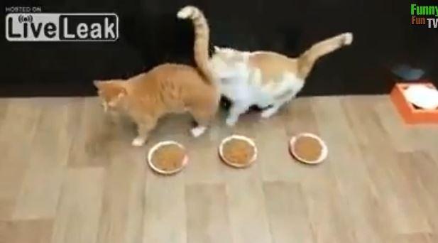 كثيرا ما توصف حيوانات بسمات إنسانية بحتة كالشجاعة والإخلاص وما إلى ذلك. لكن بعد مشاهدة هذا الفيديو لن يكون هناك شك بأن الطمع والجشع من سمات الحيوانات كذلك. ففي هذا الفيديو يظهر قط مع 3 قطط وهو يحاول أن يتناول طعامه من طبق، بعد أن وضع الطعام لكل منها على حدة.