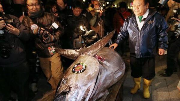ففي العام الماضي بيعت سمكة مشابهة تقريباً بثلاثة أضعاف، وهي المرة الأولى التي يسجل فيها ثمن سمك التونة هذا الانخفاض في سوف طوكيو، أكبر سوق للسمك في العالم.