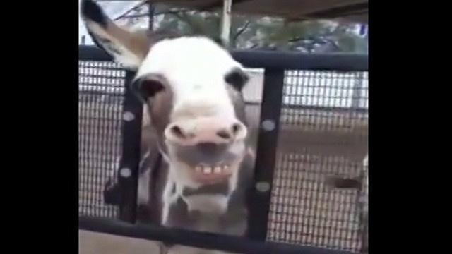 أمر الطفل الحمار أن يبتسم ليفاجأ بابتسامة من الحيوان الذي كشر انيابه وبدا وكأنه يفهم جيدا معنى هذه الكلمة. أثار ذلك فضول الطفل الذي ربما ظن أن الحمار ودود بطبعه ودائم الابتسام، فأعاد الكرة ليستجيب الحمار له بابتسامة مرة أخرى.