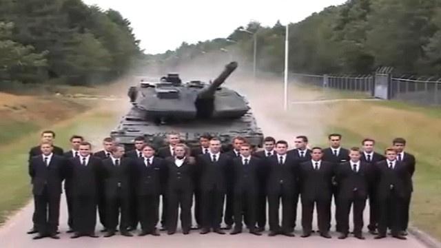 يتواصل الفيديو ويتواصل معه اقتراب الدبابة من المجموعة التي بدت في غاية الهدوء، فيما تصاعدت وتيرة القلق لدى مشاهد الفيديو، إلى أن تصبح الدبابة على بعد خطوات منهم. بسرعة وبشكل مفاجئ توقف هذا الوحش الحديدي الذي بدا كما لو انه على وشك أن يلتهم كل من وقف أمامه، او كأنه خضع للتو لاختبار المكابح .. لتنتهي التجربة بالتصفيق وعلامات الفرح قد ارتسمت على وجوه أبطال الفيديو.