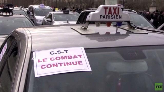 بالفيديو: فرنسا: 55 ألف سائق سيارة أجرة يحتجون على مزاحمة السيارات السياحية للقمة عيشهم