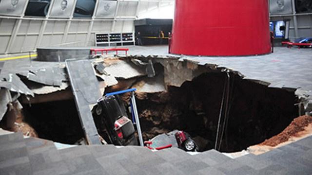 تسبب انهيار ارضية متحف "كورفيت" الوطني للسيارات في ولاية كونتاكي الامريكية بسقوط 8 سيارات في حفرة عمقها 9 امتار وقطرها 12 مترا.