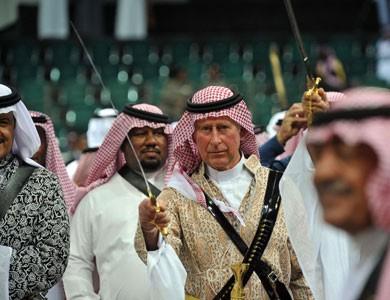 وحمل الأمير تشارلز اثناء العرضة النجدية في الجنادرية السيف وارتدى الزي التقليدي من كوفية وثوب وعباءة واحاط به النائب الثاني لرئيس مجلس الوزراء الامير مقرن بن عبد العزيز ووزير الحرس الوطني الامير متعب بن عبد الله وغيرهما من الامراء.