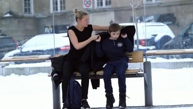 رفع تسجيل فيديو في الانترنت لطفل نرويجي يجلس في محطة حافلات عامة في أوسلو، وعلى الرغم من أن درجة الحرارة في العاصمة النرويجية بلغت 10 تحت الصفر، إلا أن الطفل البالغ من العمر 11 عاما كان يجلس بدون ملابس كافية تحميه من البرد القارس، الأمر الذي أثار انتباه معظم من جلس إلى جواره أو مرّ بجانبه.