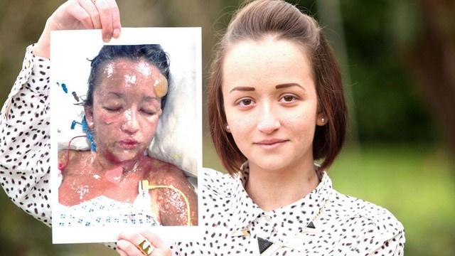 وقالت الفتاة: "اعتقدت أني أفارق الحياة، لم أتمكن من فتح عيني بسبب تورمها وبدا لي أن جسمي يذرف قيحا كثيفا أصفر اللون". ظهرت الفقاعات داخل فم الفتاة أيضا، وعندما بدأ اطباء مستشفى نورفولك بمسحها بالمرهم بدأ الجلد ينسلخ ويتساقط بين أيديهم.