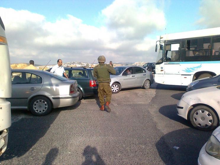 وفاد شهود عيان لــ " رايــة "" ان الحاجز يشهد ازمة مرورية خانقة في كلا الاتجاهين .