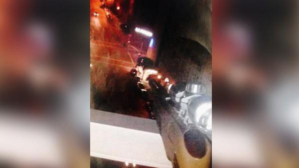 وكان الشاب، المدعو "دكاري ماك أنوف" نشر عبر حسابه على "تويتر" صوراً عدة لبندقية مصوبة باتجاه مارة على الطريق. وأرفق كل صورة برسالة تدعو مشتركي "تويتر" الى إعادة التغريدة، كي يطلق النار، قائلاً "100 إعادة تغريدة وسأطلق النار على أحد المارة".