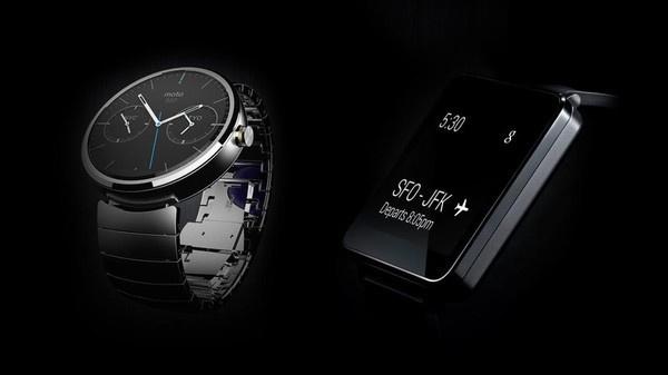 وأعلنت جوجل عن اثنين من منتجاتها الأولى للأجهزة الذكية القابلة للارتداء العاملة بنظام أندرويد، وهما: ساعة ذكية تحت اسم Moto 360 أنيقة دائرية الشكل، والثانية LG G Watch ذات تصميم تقليدي مربع الشكل مع هيكل أسود عاكس للضوء.