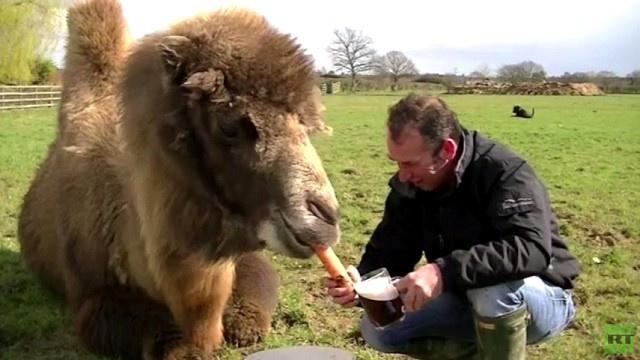 بالفيديو...جمل يتعاطى الخمر مع صاحبه