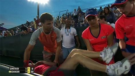 في أحد النقاط أثناء المباراة، ذهب ديميتروف يطلب من أحد صبية الملاعب المنشفة، إلا أن لاحظ التعب والإرهاق عليها، فقام بسؤالها عن حالتها البدنية، وبعدها قرر أن يأخذها إلى خارج الملعب لتلقي العلاج وأوقف المباراة وخرج من تركيزة في مباراة كبيرة.
