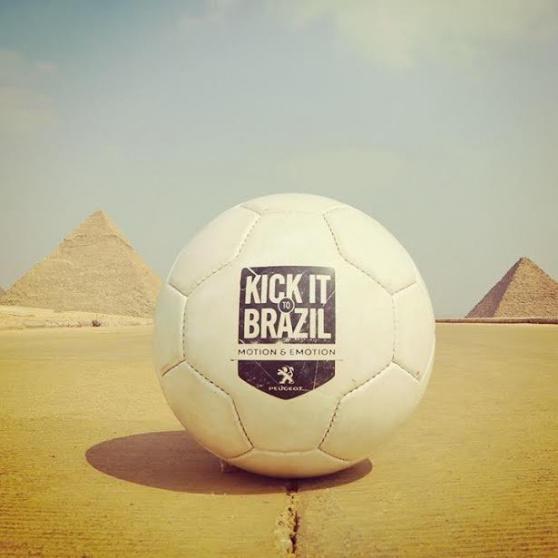 تعد بيجو شركه السيارات الفرنسيه الاكثر استعدادً لكأس العالم لكره القدم 2014، فهي تستعد لاستقباله مع محبيها من كل انحاء العالم بطريقه مختلفه، حيث اطلقت بيجو حمله "Kick It to Brazil" التي ستستمر علي مدار 100 يوم، وكانت مصر احد الدول التي مرت بها كره بيجو حتي الان، حيث تجولت في مناطق اثريه وسياحيه في القاهره مثل منطقه الاهرامات وغيرها، واهتم كثير من المصريين بالتقاط الصور التذكاريه معها.