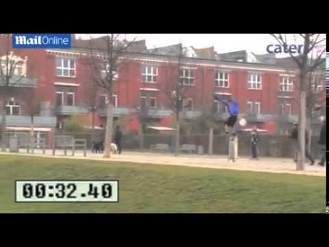 ونشرت صحيفة دايلي ميل البريطانية فيديو يظهره وهو يحفظ توازنه رغم وقوفه على يديه بالعكاز لمسافة 100 متر في 56 ثانية فقط.
