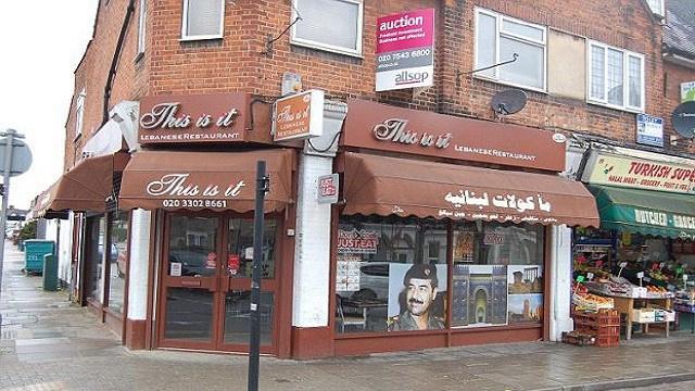 مالك مطعم لبناني في لندن يصر على وضع صورة صدام حسين على واجهة مطعمه