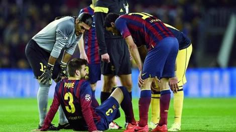 وتعرض بيكيه للإصابة بعد 11 دقيقة فقط من بداية مباراة برشلونة مع أتلتيكو مدريد مساء أمس الثلاثاء في ذهاب دور الثمانية لدوري أبطال أوروبا والتي انتهت بالتعادل 1/1 وخرج اللاعب من المباراة في الدقيقة 12 وحل مكانه المدافع الشاب مارك بارترا.