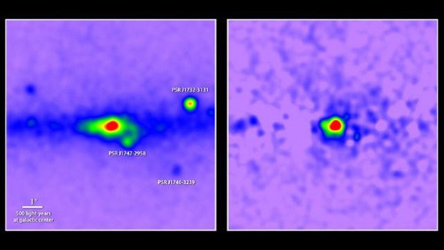 استخدم علماء الفلك تليسكوب "فيرمي" الفضائي لوضع خريطة لتوزيع أشعة غاما في نواة مجرتنا، ليبين التحليل وجود إشعاع قوي مفرط لا يمكن تفسيره بمصادر عادية مثل بقايا سوبرنوفا ووجود النجوم النابضة التي تدور بسرعة. ويرى كتاب مقالين نشرا في مجلة Physical Review D، أن أشعة غاما قد تظهر نتيجة لاصطدام وإبادة جزيئات المادة المظلمة. واعتبر العالم تريسي سليتيير من معهد ماساتشوستس للتقنية: "بالطبع، هناك أمور غامضة كثيرة، ولكننا حصلنا على إشارة شيقة جدا، وربما في المستقبل قد ننظر إلى الخلف ونقول إن تلك كانت أول مرة شاهدنا فيها عملية إبادة المادة المظلمة". ويذكر أن المتفق عليه حتى الآن هو أن المادة المظلمة تتكون من نوع جديد من الجزيئات يكاد لا يتفاعل مع كل القوى المعروفة في الكون باستثناء الجاذبية، وبذلك لا يمكن رؤية المادة المظلمة أو الإمساك بها، ولا يمكن تحديد وجودها إلا من خلال قوة جاذبيتها.