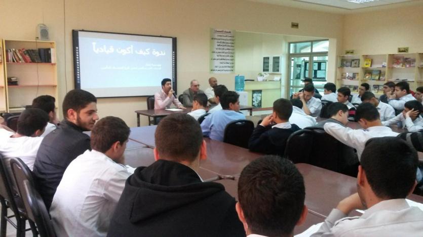 نفذت مؤسسة إنجاز فلسطين ندوة بعنوان "كيف أكون قيادياً" في المدرسة الإسلامية الثانوية للذكور، وقدمها مدير فرع شركة المشرق للتأمين في نابلس ناصر شاهين، بمشاركة (70) طالب من صفوف العاشر.