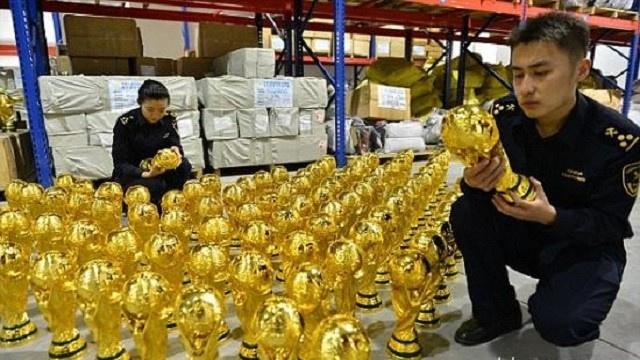 أحبط الأمن الصيني عملية شحن نسخ من كأس العالم لكرة القدم، أعدت للتصدير إلى ليبيا، إذ داهمت شرطة مدينة يوو في شرق البلاد مصنعا أنتج أكثر من ألف قطعة من كأس العالم المقلد.
