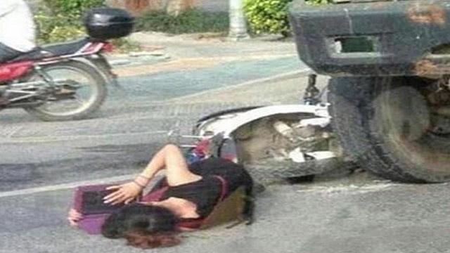 صينية تنتهز فرصة تعرضها لحادث لمراجعة دروسها