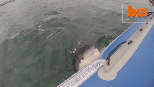 بالفيديو .. سمك قرش يهاجم قاربا مطاطيا