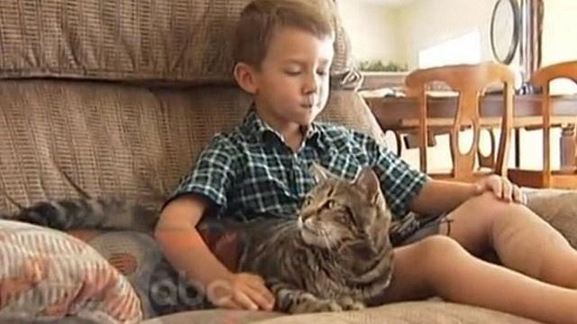 "بالفيديو" قطة تنقذ طفلا من كلب هاجمه