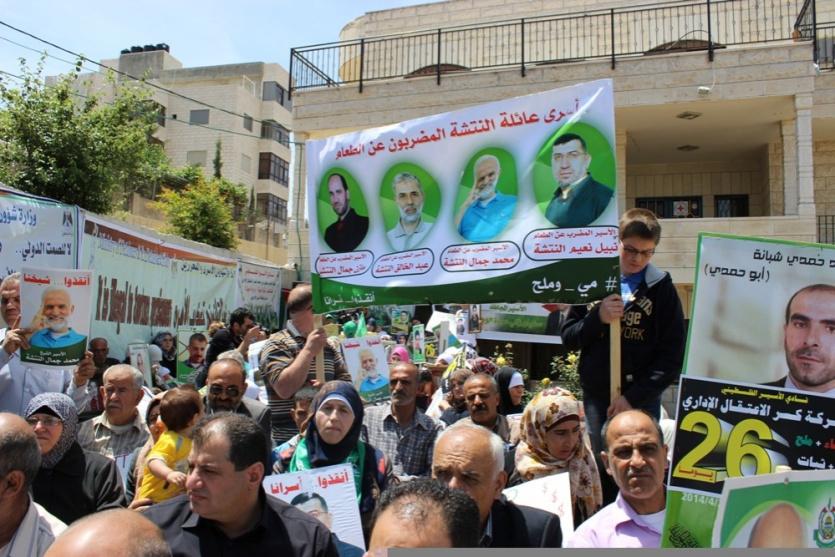 ورفع المشاركون صور الأسرى الإداريين المضربين عن الطعام، كما طالبوا المؤسسات الحقوقية الضغط على إسرائيل لإنهاء ملف الاعتقال الإداري والإفراج عن أبنائهم.