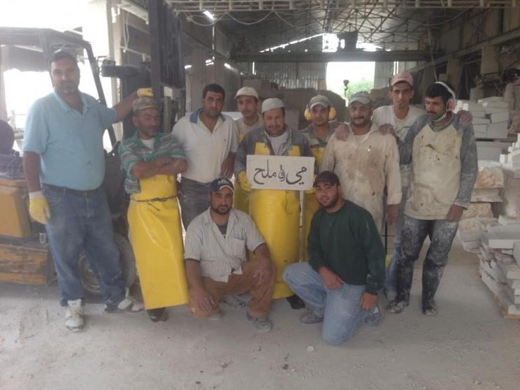 قام عدد من العمال في معمل حجر ببلدة المزرعة الشرقية بمحافظة رام الله بنقش جملة " مي وملح " على حجر تضامنا مع الاسرى الاداريين المضربين عن الطعام لليوم الثالث والاربعين على التوالي .