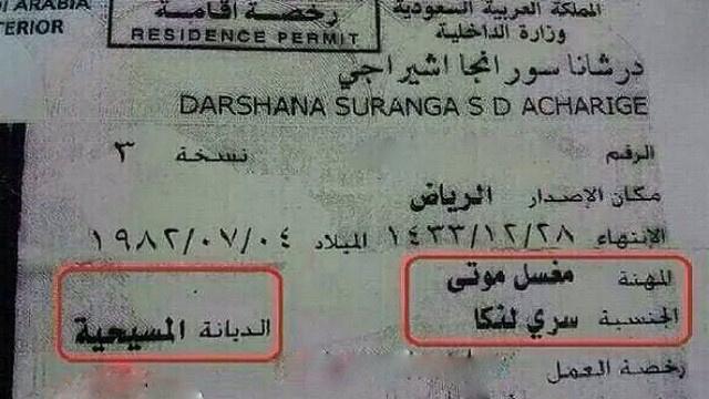 هذا وكانت مواقع التواصل الاجتماعي تناقلت صورة لرخصة إقامة تعود لوافد سيرلانكي يعمل مغسّل موتى، علما أنه مسيحي الديانة كما بدا واضحا في رخصة الإقامة.